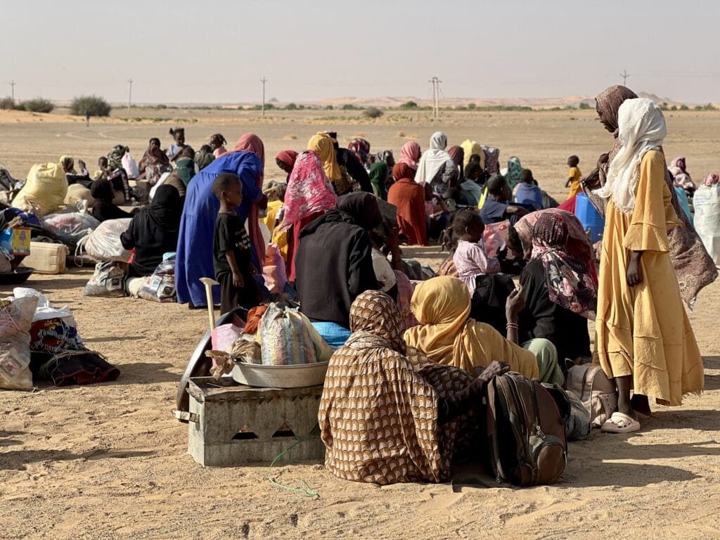 عائلات سودانية نازحة نزحت إلى مخيّم العفاض، الذي أُنشئ حديثاً في مدينة الدبّة، ويقطنه آلاف النازحين الفارين من مدينة الفاشر ومناطق الاشتباك الأخرى في شمال دارفور، إثر استيلاء قوات الدعم السريع على مدينة الفاشر، والتُقطت هذه الصورة في السادس من نوفمبر 2025. (تصوير: سترينغر/ وكالة الأناضول/ وكالة الصحافة الفرنسية).