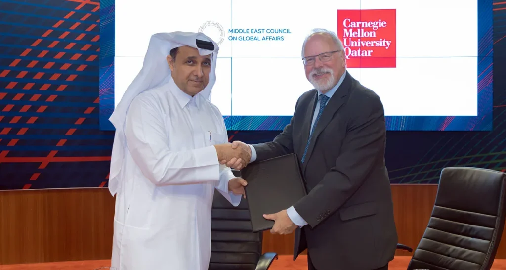 The Middle East Council on Global Affairs (ME Council) and Carnegie Mellon University in Qatar (CMU-Q) signed a Memorandum of Understanding (MoU) to establish a comprehensive framework for cooperation in research, education, and professional development across the region.
